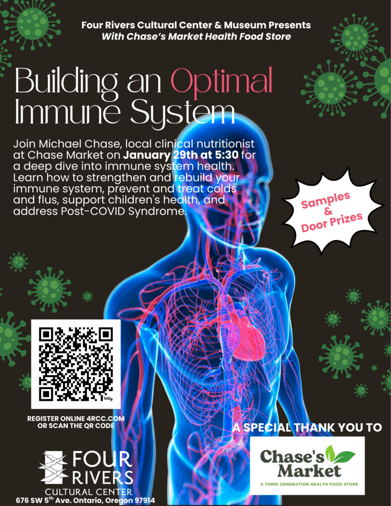 Join Michael Chase, local clinical nutritionist at Chase Market on January 29th at 5:30 PM for a deep dive into immune system health. Learn how to strengthen and rebuild your immune system, prevent and treat colds and flus, support children’s health, and address Post-COVID Syndrome.