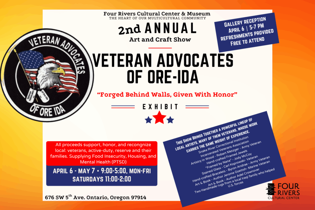 Four Rivers Cultural Center & Museum is proud to present the 2nd Annual Veteran Advocates of Ore-Ida Art & Craft Show, featuring the exhibit “Forged Behind Walls, Given With Honor.”